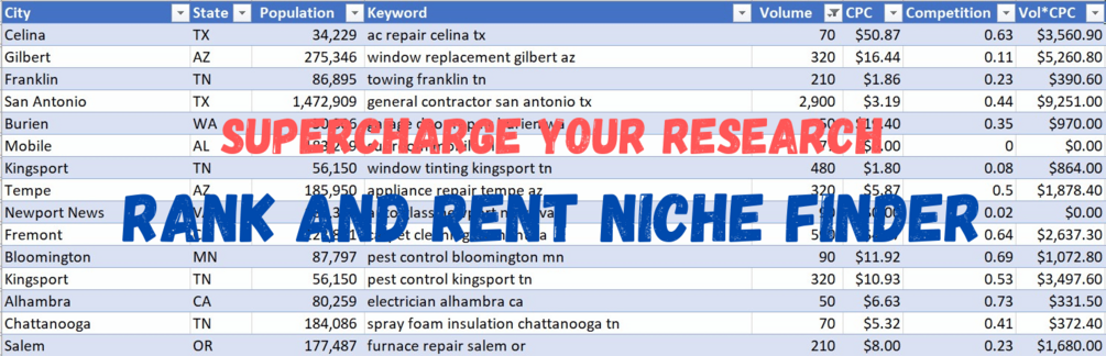 Find the perfect rank and rent niche using this handy spreadsheet.